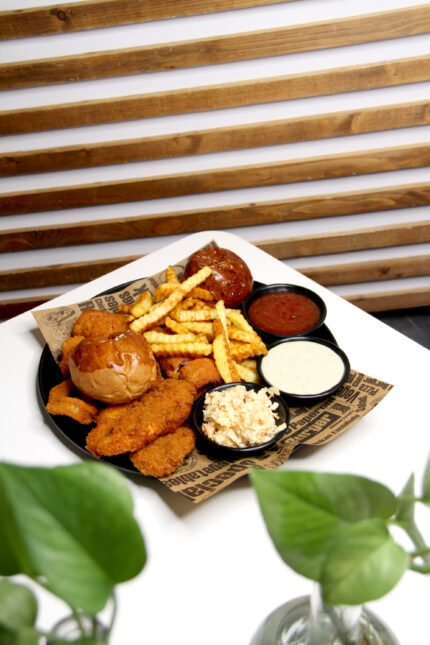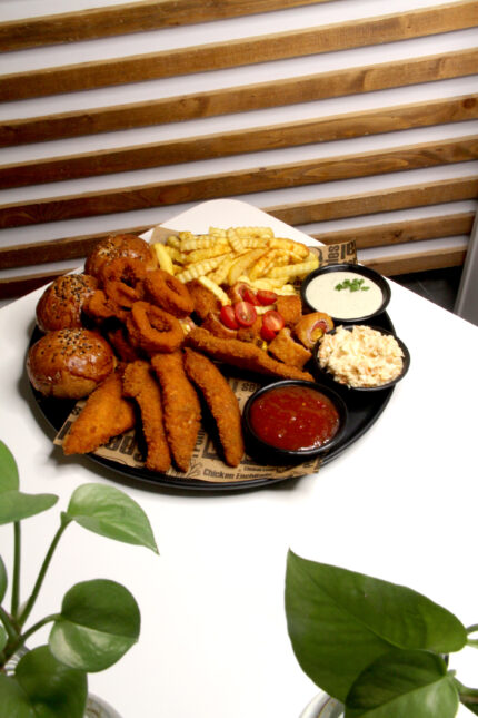 پک سس(شامل 2 عدد سس کچاب تک نفره-1عدد سس مایونز تک نفره-فلفل ،نمک،آویشن)پک سوخاری(شامل سس چیلی تای-سس سیر-سالاد کلم-2عدد نان بروچن)سیب زمین سرخ شده